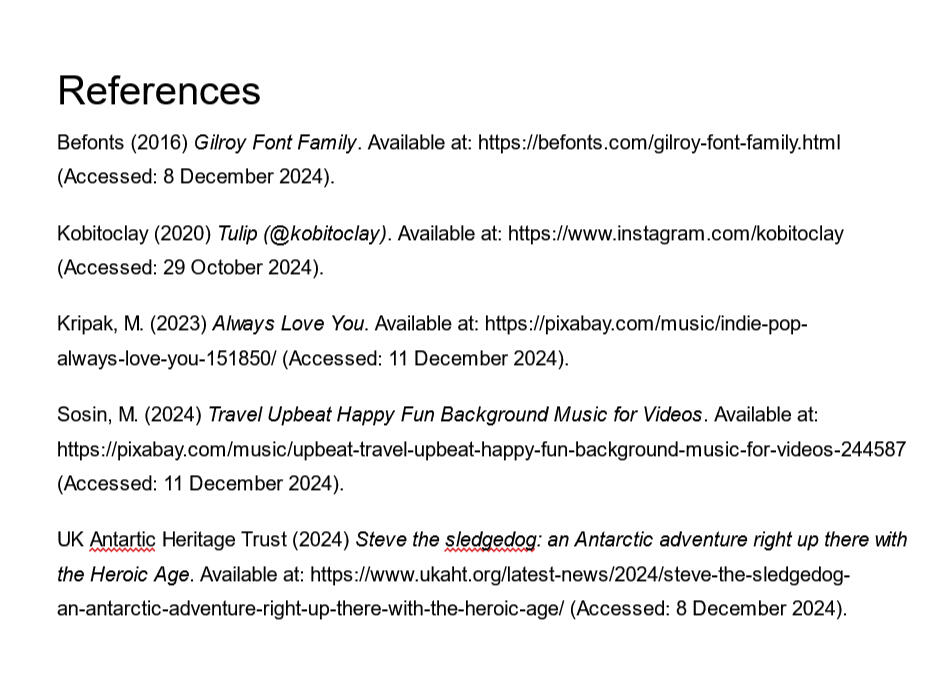 AdobeMasters (2017) How to Control Multiple Layers in Adobe After Effects CC 2018, www.youtube.com. Available at: https://youtu.be/PGqIdPCGwaQ?si=nOaOn-2pa-fDHFay (Accessed: 13 November 2023).AJR (2020) AJR - My Play (Official Video), www.youtube.com. Available at: https://www.youtube.com/watch?v=Ew8jKnliFZg (Accessed: 24 September 2023).AJR (2021a) AJR - Adventure Is Out There (Official Audio), www.youtube.com. Available at: https://www.youtube.com/watch?v=AYBPvJ67YPs (Accessed: 24 September 2023).AJR (2021b) AJR - World’s Smallest Violin (Official Video), www.youtube.com. Available at: https://www.youtube.com/watch?v=PEnJbjBuxnw (Accessed: 24 September 2023).BBC (2012) BBC Radio 4 - The Listening Project - About, BBC. Available at: https://www.bbc.co.uk/programmes/articles/41rDvmTW0T1JWjXkcvZtMqt/about (Accessed: 19 September 2023).BBC (2021) The Listening Project - Awards and Challenges - BBC Sounds, www.bbc.co.uk. Available at: https://www.bbc.co.uk/sounds/play/m000yl98 (Accessed: 19 September 2023).Carter, T. (2023a) Central Kingdom Street, Nimona, Concept Art Association. Available at: https://www.conceptartassociation.com/2023-caa-finalists/blog-post-title-one-amczg-jpd8m-rp5tx-ncy8t-z6rdc-efzsd-4m59w-nxc8a-aadae-c67yr-htn2l-afr79-p8nk7 (Accessed: 2 October 2023).Carter, T. (2023b) Nimona Overlooks Central Kingdom, Nimona, Concept Art Association. Available at: https://www.conceptartassociation.com/2023-caa-finalists/blog-post-title-one-amczg-jpd8m-rp5tx-ncy8t-z6rdc-efzsd-4m59w-nxc8a-aadae-c67yr-htn2l-afr79-p8nk7-tfc6g (Accessed: 2 October 2023).Castleberry, C. and Castleberry, C. (2022) Yes, There are Three Types of ADHD – Here’s What You Need to Know About Each of Them, SheKnows. Available at: https://www.sheknows.com/health-and-wellness/articles/2581831/three-adhd-types-what-to-know/ (Accessed: 24 September 2023).Concept World (no date) The Art of Snow White and the Seven Dwarfs | Concept Art World, The Art of Snow White and the Seven Dwarfs. Available at: https://conceptartworld.com/books/the-art-snow-white-and-the-seven-dwarfs/ (Accessed: 2 October 2023).Foreman, J. (2006) Jay Foreman - YouTube, www.youtube.com. Available at: https://www.youtube.com/@JayForeman (Accessed: 19 September 2023).Gerber, J. (2021) Review: AJR’s ‘OK ORCHESTRA’ presents band’s most emotional lyrics paired with signature sound, The Lancer Feed. Available at: https://lancerfeed.press/opinions/2021/04/16/review-ajrs-ok-orchestra-presents-bands-most-emotional-lyrics-paired-with-signature-sound/ (Accessed: 23 September 2023).GISGeography (2023) World Map with Countries, GIS Geography. Available at: https://gisgeography.com/world-map-with-countries/ (Accessed: 19 September 2023).Granville, V. (2021) Defining and Measuring Chaos in Data Sets: Why and How, in Simple Words - DataScienceCentral.com, Data Science Central. Available at: https://www.datasciencecentral.com/defining-and-measuring-chaos-in-data-sets-why-and-how-in-simple-w/ (Accessed: 25 September 2023).Gullickson, B. (2020) ‘Steamboat Willie’ Transformed Mickey Mouse From Failure to Champion, Film School Rejects. Available at: https://filmschoolrejects.com/mickey-mouse-steamboat-willie/ (Accessed: 1 October 2023).Johnson, N. (2023) Spider-Verse 2 Reveals Main Villain’s Insane Superpowers In New Footage, The Direct. Available at: https://thedirect.com/article/spider-verse-2-villain-superpowers-footage (Accessed: 22 September 2023).Juan, P. (2018) Portrait Photo of Man in White Crew-neck T-Shirt with Assorted Hand Tools in Background, Pexels. Available at: https://www.pexels.com/photo/portrait-photo-of-man-in-white-crew-neck-t-shirt-with-assorted-hand-tools-in-background-1139743/ (Accessed: 10 December 2023).Khazan, O. and Boyd, K. (2020) The Benefits of Not Fitting In, Think. Available at: https://think.kera.org/2020/04/14/the-benefits-of-not-fitting-in/ (Accessed: 25 September 2023).Landekic, L. (2019) Good Omens, www.artofthetitle.com. Available at: https://www.artofthetitle.com/title/good-omens/ (Accessed: 25 September 2023).Manuel does motion (2022) Crazy Trim Paths Tricks in After Effects | Tutorial, www.youtube.com. Available at: https://youtu.be/748l7DIU4bQ?si=GHbo1Z7m3VIwjgLn (Accessed: 13 November 2023).Nakaya, R. (2021) ‘I Put a Tiny Camera on My Cat for 24 Hours’, The Kid Should See This. Available at: https://thekidshouldseethis.com/post/tiny-camera-on-cat-24-hours-half-asleep-chris-video (Accessed: 10 February 2023).Piacquadio, A. (2017) Closeup Photo of Woman with Brown Coat and Gray Top, Pexels. Available at: https://www.pexels.com/photo/closeup-photo-of-woman-with-brown-coat-and-gray-top-733872/ (Accessed: 10 December 2023).Pixbay (2021a) Fire Breath, Pixbay. Available at: https://pixabay.com/sound-effects/fire-breath-6922/ (Accessed: 7 December 2023).Pixbay (2021b) swoosh, Pixbay. Available at: https://pixabay.com/sound-effects/swoosh-6428/ (Accessed: 7 December 2023).Pixbay (2022b) Chime Song Mellow Chill Short 2, Pixbay. Available at: https://pixabay.com/sound-effects/chime-song-mellow-chill-short2-62649/ (Accessed: 10 December 2023).Ramin Zahed (2023) Spider-Man: Across the Spider-Verse. Abrams.